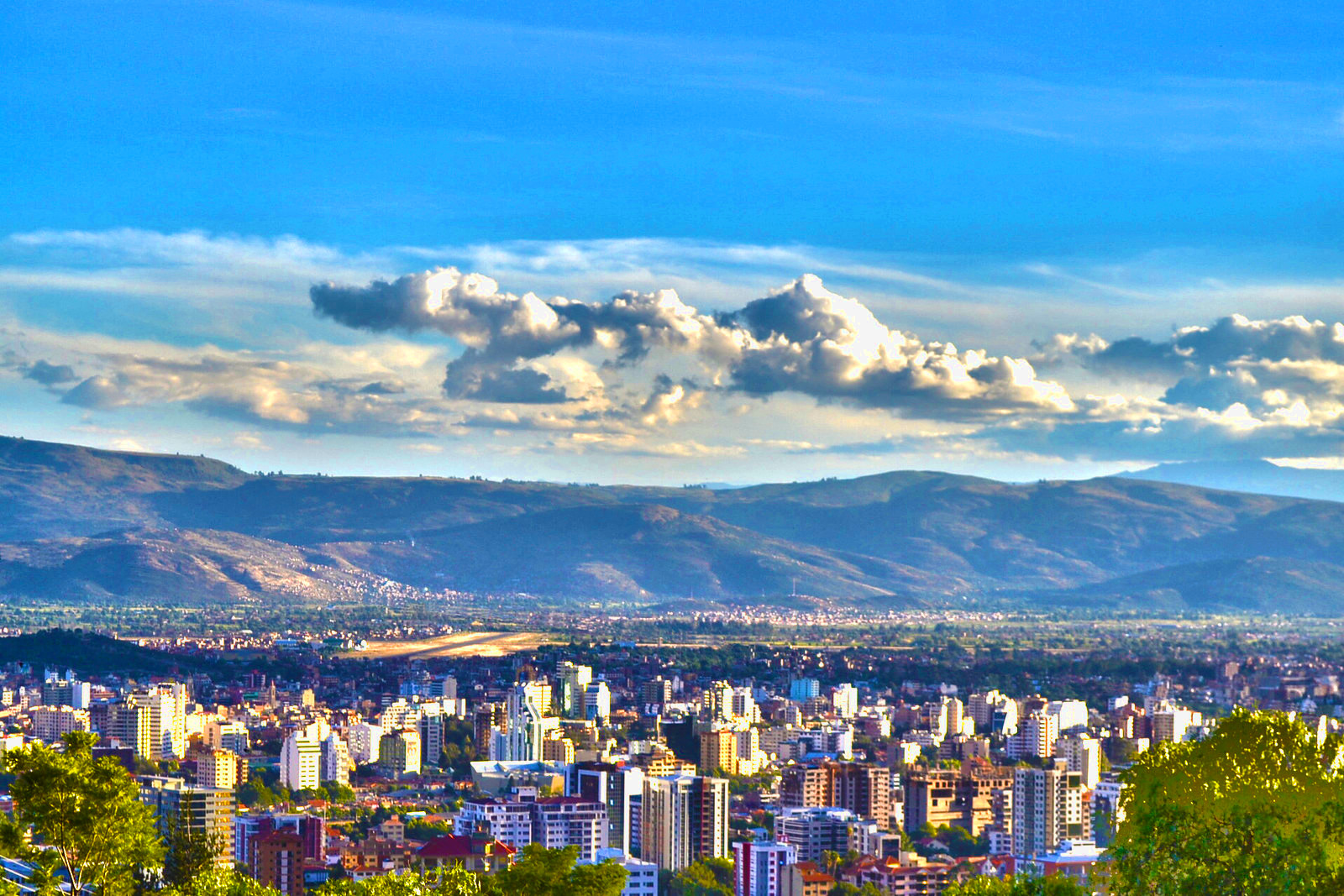 Cochabamba is located in a valley of fertile and productive land at 2558 m high. The city, surrounded by fields of crops and valuable pre-Inca and Inca vestiges, retains its viceregal personality.